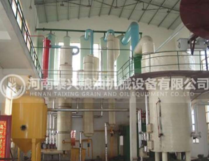 油脂浸出設(shè)備主要由浸出器、蒸脫機、蒸發(fā)器、汽提塔、冷凝器等設(shè)備組成。利用有機溶劑的萃取原理,經(jīng)過對油料料胚(大豆)或預(yù)榨餅(菜籽、棉籽、葵花籽、花生、米糠、芝麻、茶籽、椰子等)的接觸、浸泡或噴淋,使油料中油脂被萃取出來。